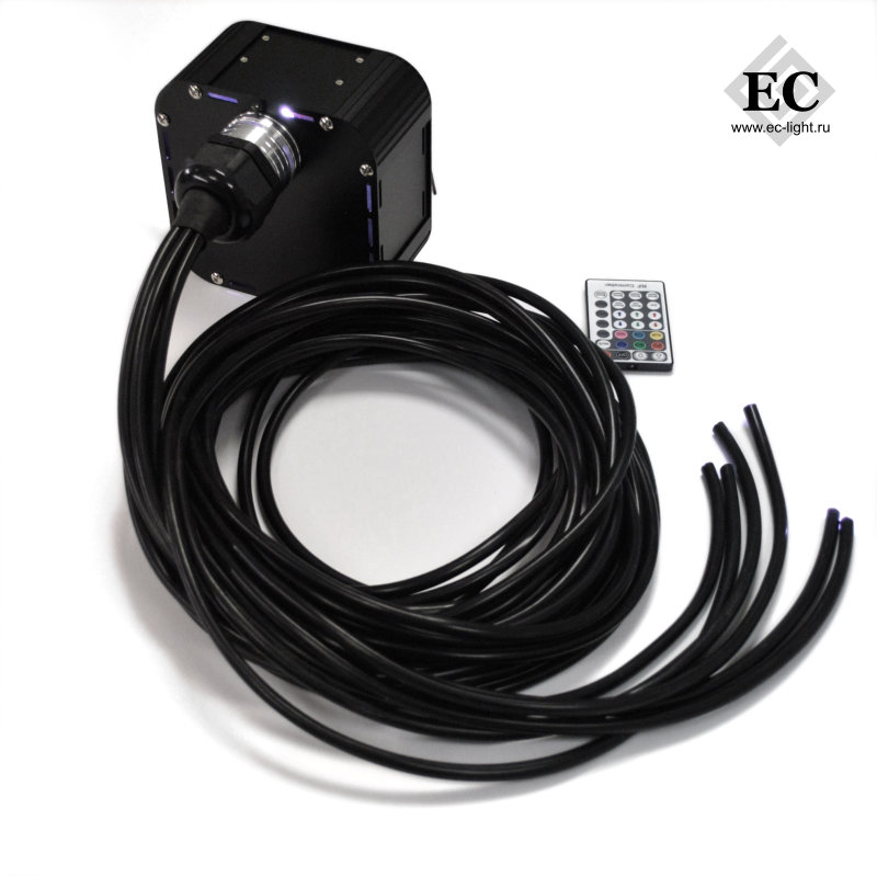 Комплект оптоволоконного освещения идеально подойдет для создания имитации звездного неба. В проекторе реализована функции «переливания цвета», «выбора цвета» и «мерцание».